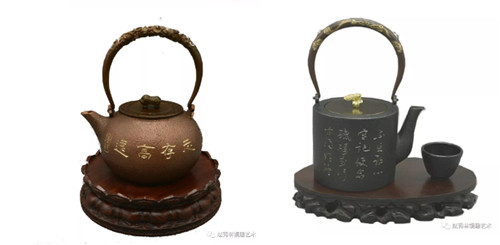 针对中华茶道文化的复兴,团队开发的手工铜雕茶具系列作品极受消费者喜爱,目前已开发了20余款壶型,多款茶洗、茶杯、茶垫。此外,赵秀林团队大胆的移植创新,将绍兴铜雕传统凿刻技法移植到铁壶器表,形成了一个铁壶新品种——刻铜铁壶,目前一款刻铜铁壶获得国家专利,手刻铸铜壶专利也将于近期下发,系列茶器亮相央视《乡愁》栏目。